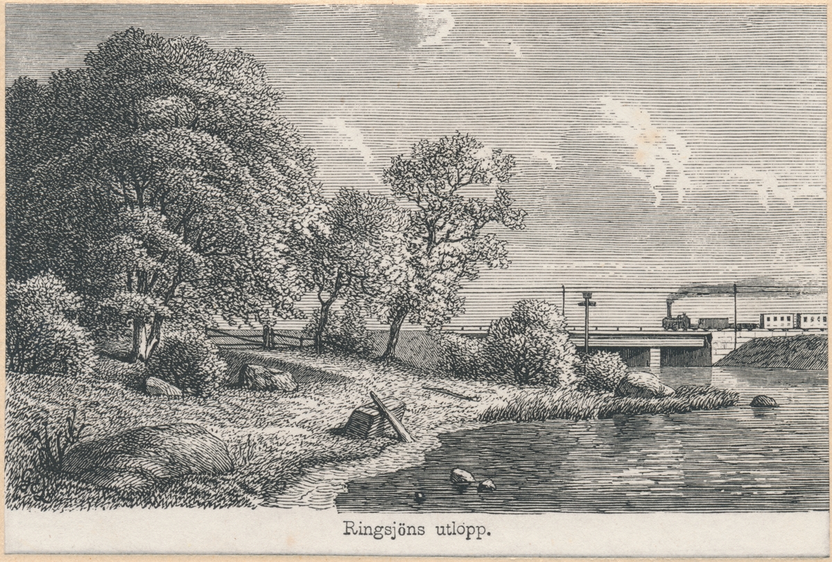 Titel: Bro över Rönne Å vid åns utlopp i Ringsjön.