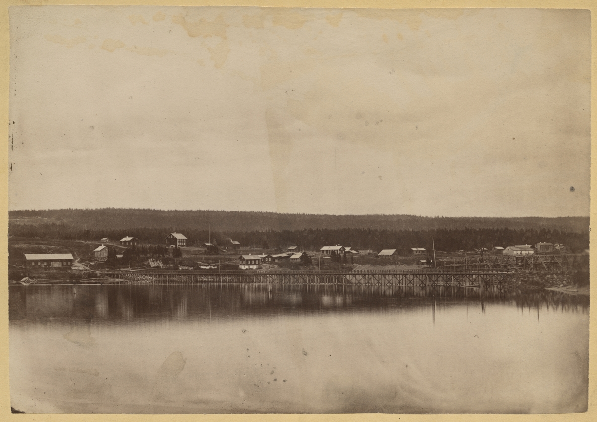 SJs banbyggnad av Linjen Torpshammar- Riksgränsen (Storlien) på orten Notvallen, där Hjärpebron går över Järpströmmen, någon gång mellan år 1874- 1884.