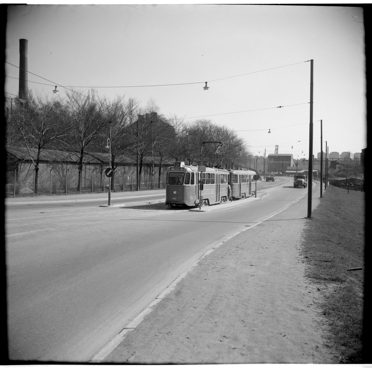 Aktiebolaget Stockholms Spårvägar, SS A25 447 "mustang" linje 10 Värtan - Slussen - Hornstull på Lidingövägen vid Jägmästargatan.