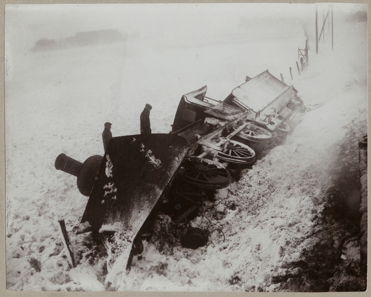 Urspårat ånglok med tender under vintertid mellan Bjuv och Påarp.