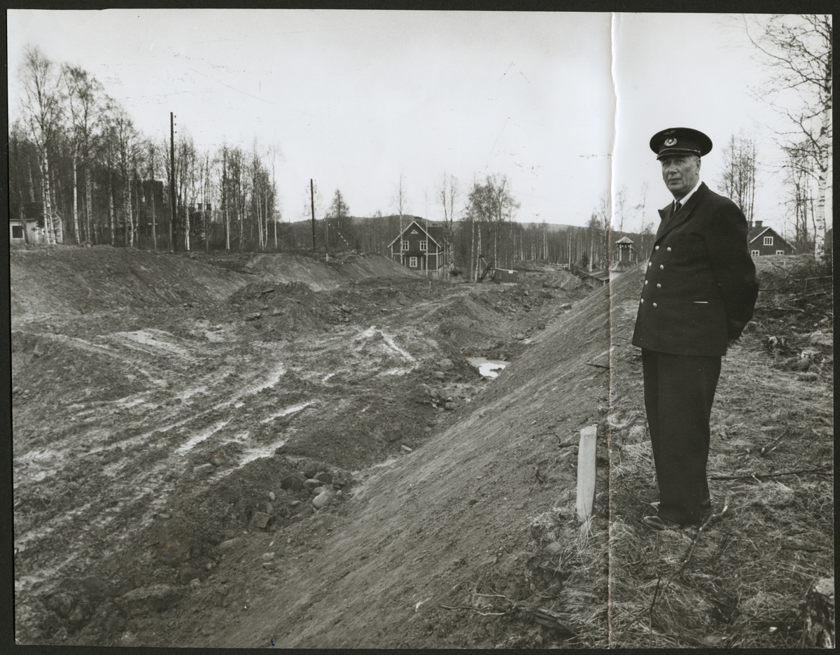 Personal står vid en kommande järnvägslinje efter Storå - Stråssa linjen där det ska byggas en gruvbangård.