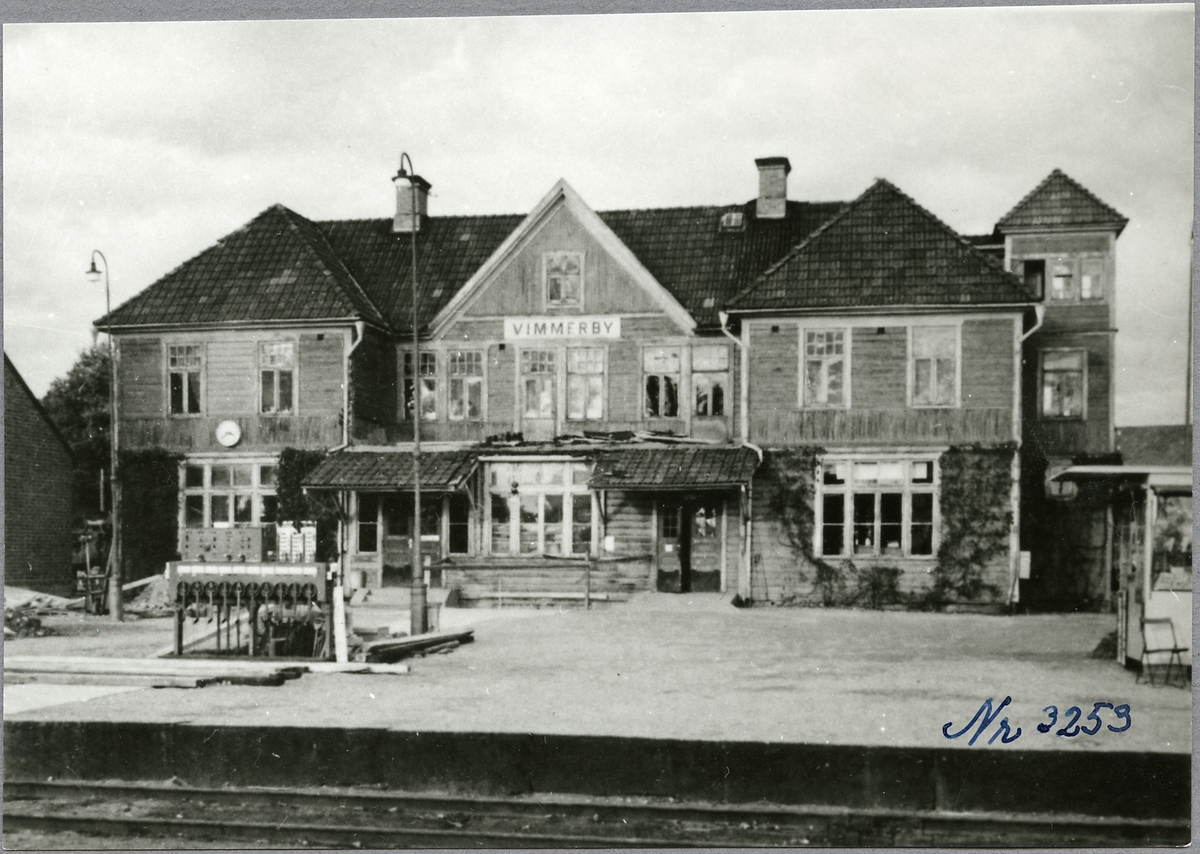 Vimmerbys gamla stationshus, det nya som byggdes på1950-talet, skymtas till vänster i bild.