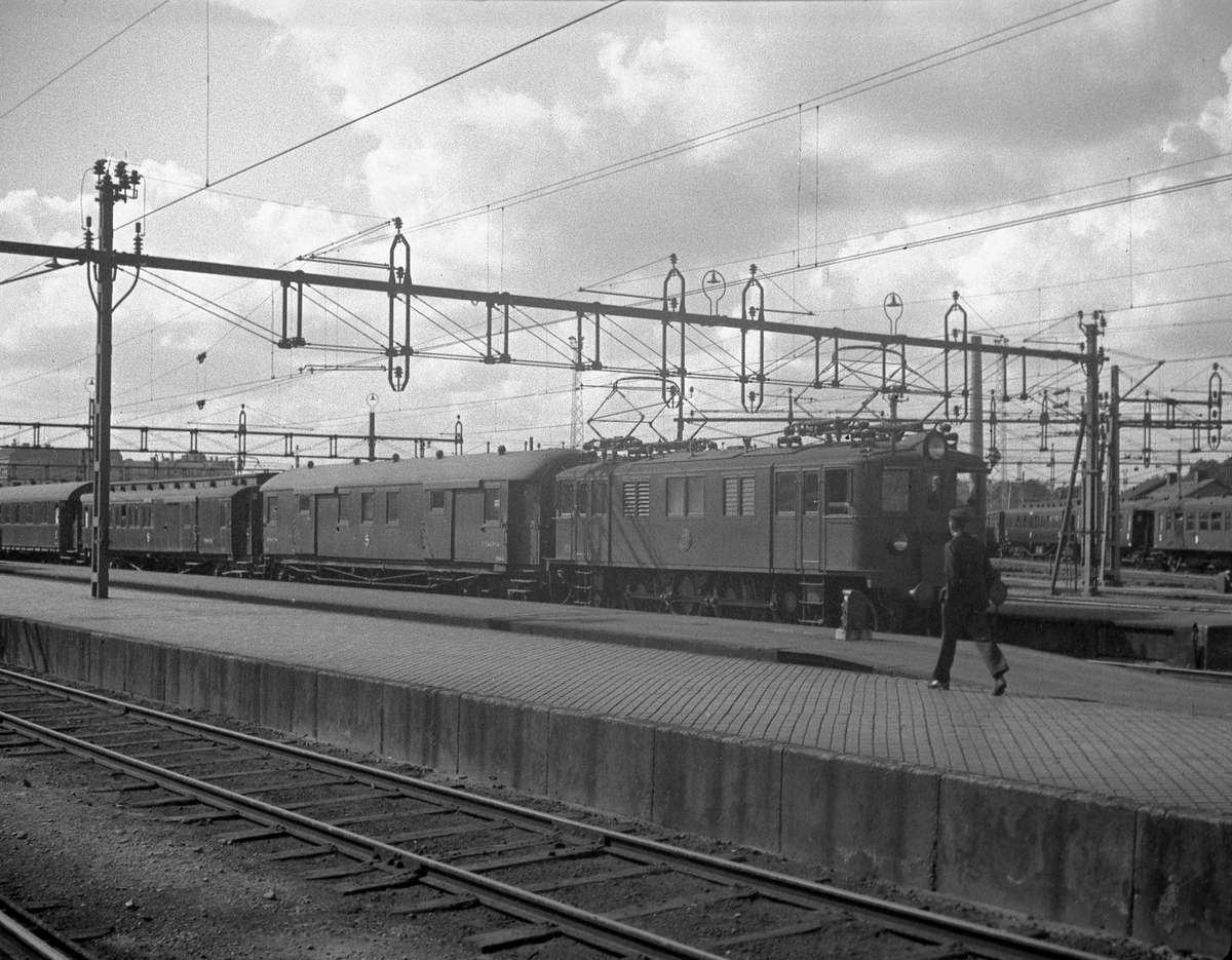 Statens Järnvägar, SJ D-lok med snälltåg, vid Göteborgs Central.