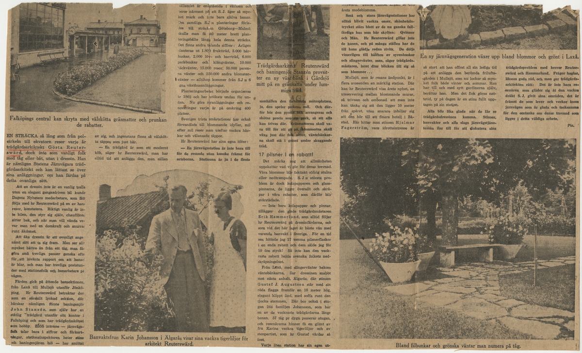 Tidningsklipp ur "Uppsatser om trädgårdar m.m. som på ett eller annat sätt beröra Gösta Reuterswärd 1931-1943".