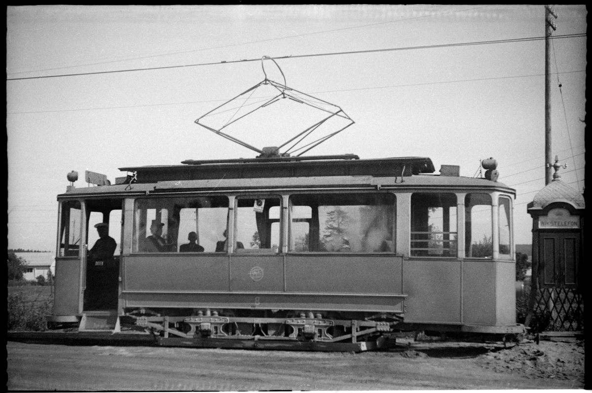 Sundsvalls Spårvägs Aktiebolag, SSA spårvagn 8 vid Kubikenborg. Linjen som trafikeras är Kubikenborg - Sundsvall - Ortviken.