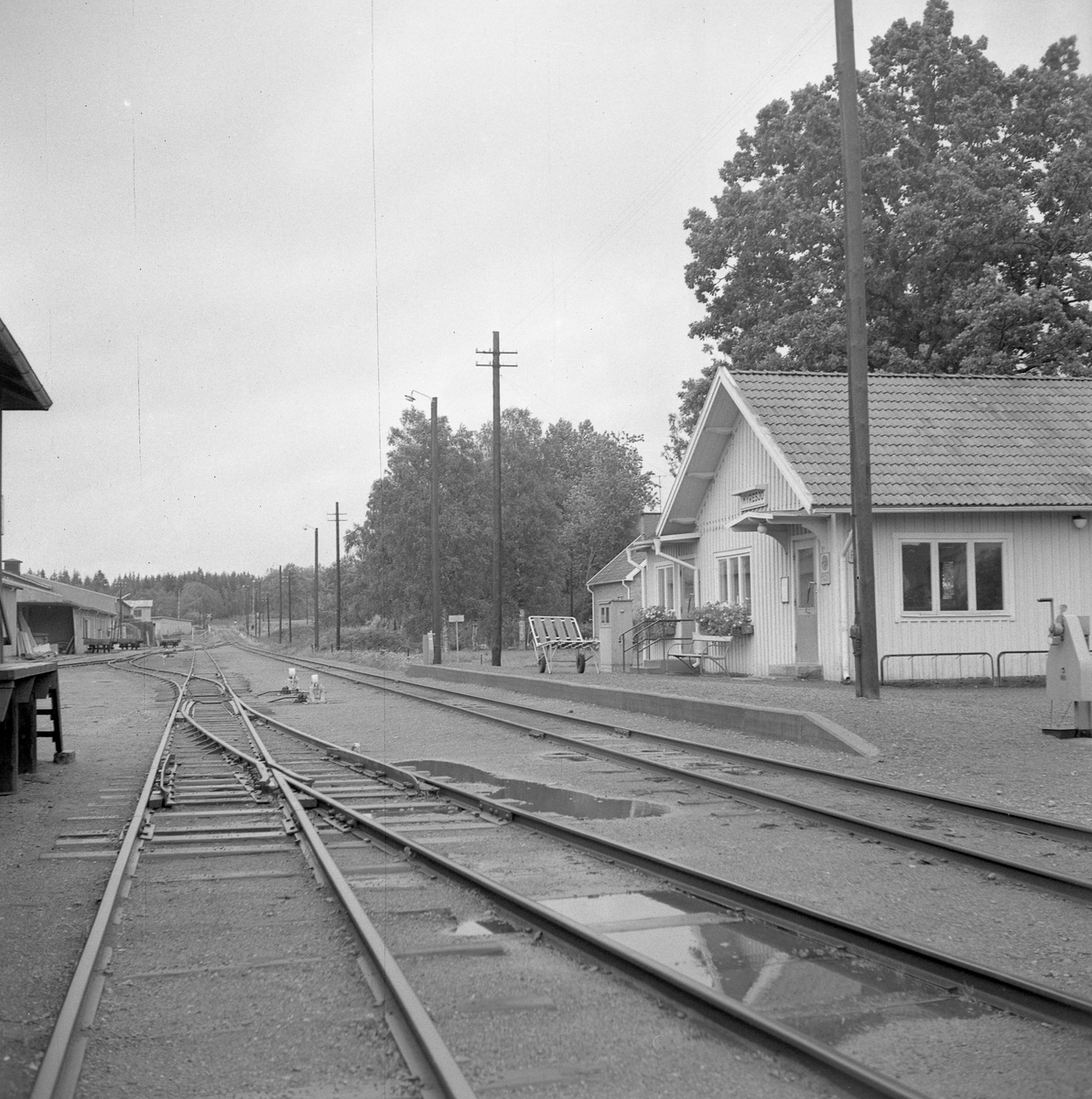 Station anlagd 1885. Stationshuset, envånings i trä, ombyggdes 1939 och 1944 utvidgades expeditionslokalerna