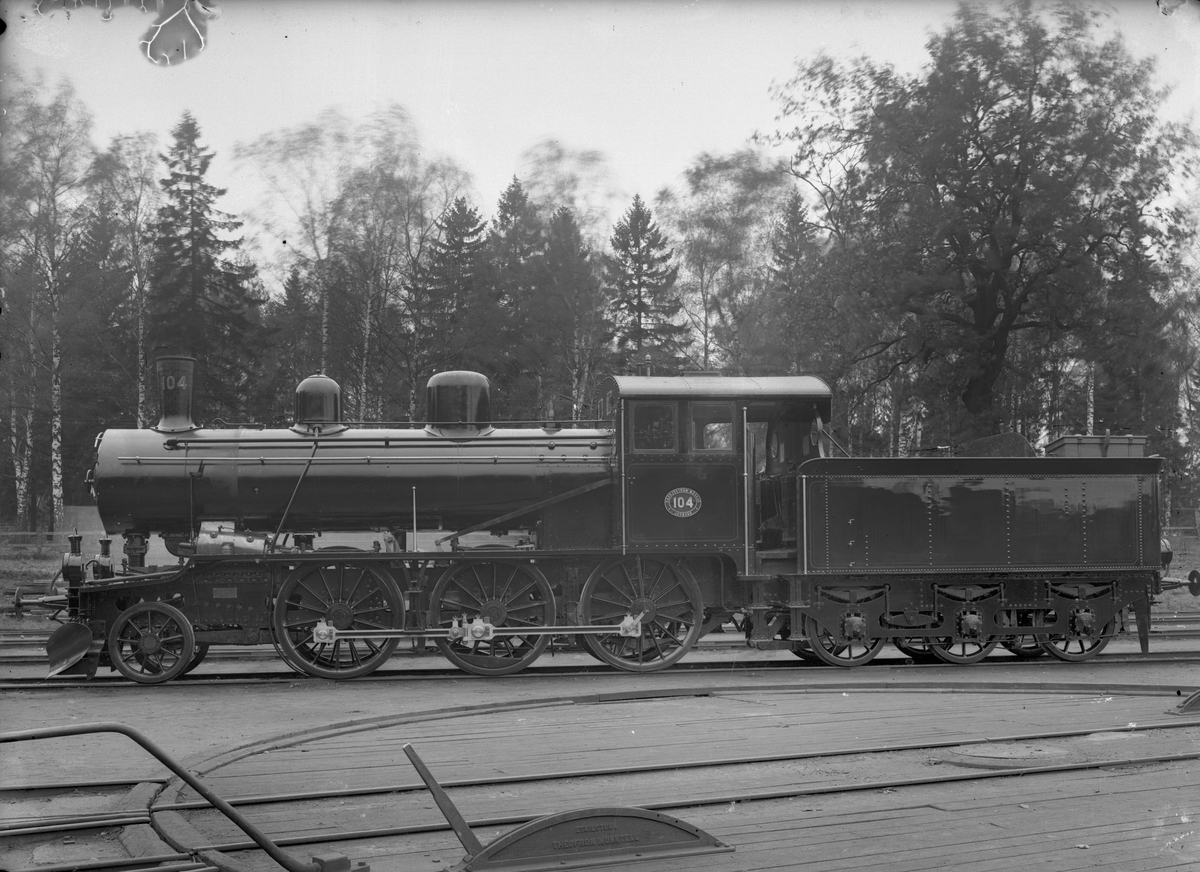 SäNJ L2 104. Leveransfoto. Loket tillverkades av Motala Verkstad och hade högsta hastighet 85 km i timme. Såldes 1940 till Statens Järnvägar och fick littera SJ L7 1581. Skrotad 1967 i Vislanda.