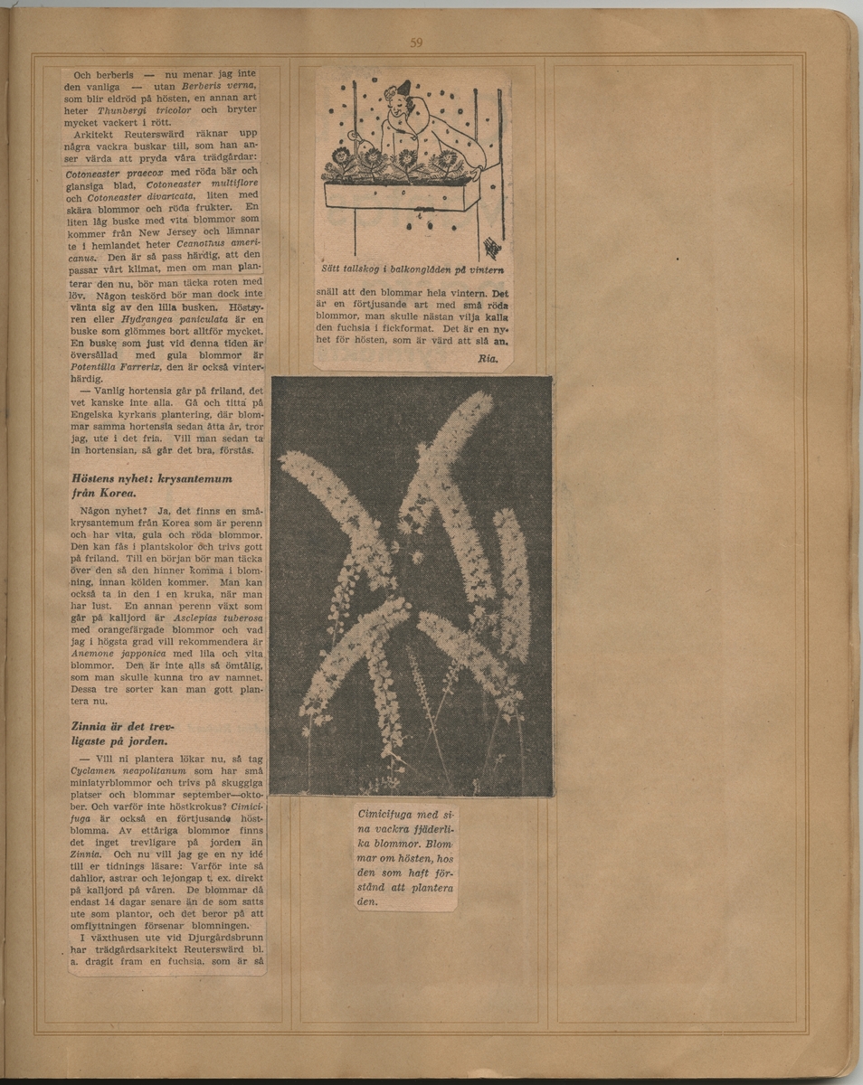 Tidningsklipp ur "Uppsatser om trädgårdar m.m. som på ett eller annat sätt beröra Gösta Reuterswärd 1931-1943".
