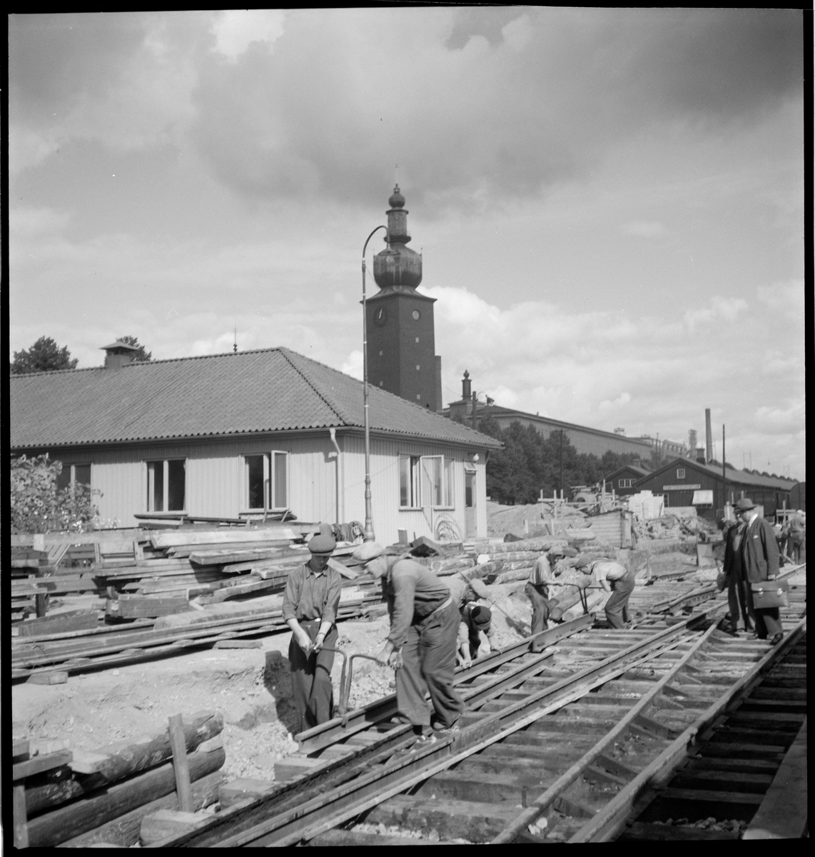 Järnvägsbygge i Västerås. Snett bakåt i bild ses Ottarkontoret där Asea Brown Boweri har sitt huvudkontor, granne med Västerås Centralstation.