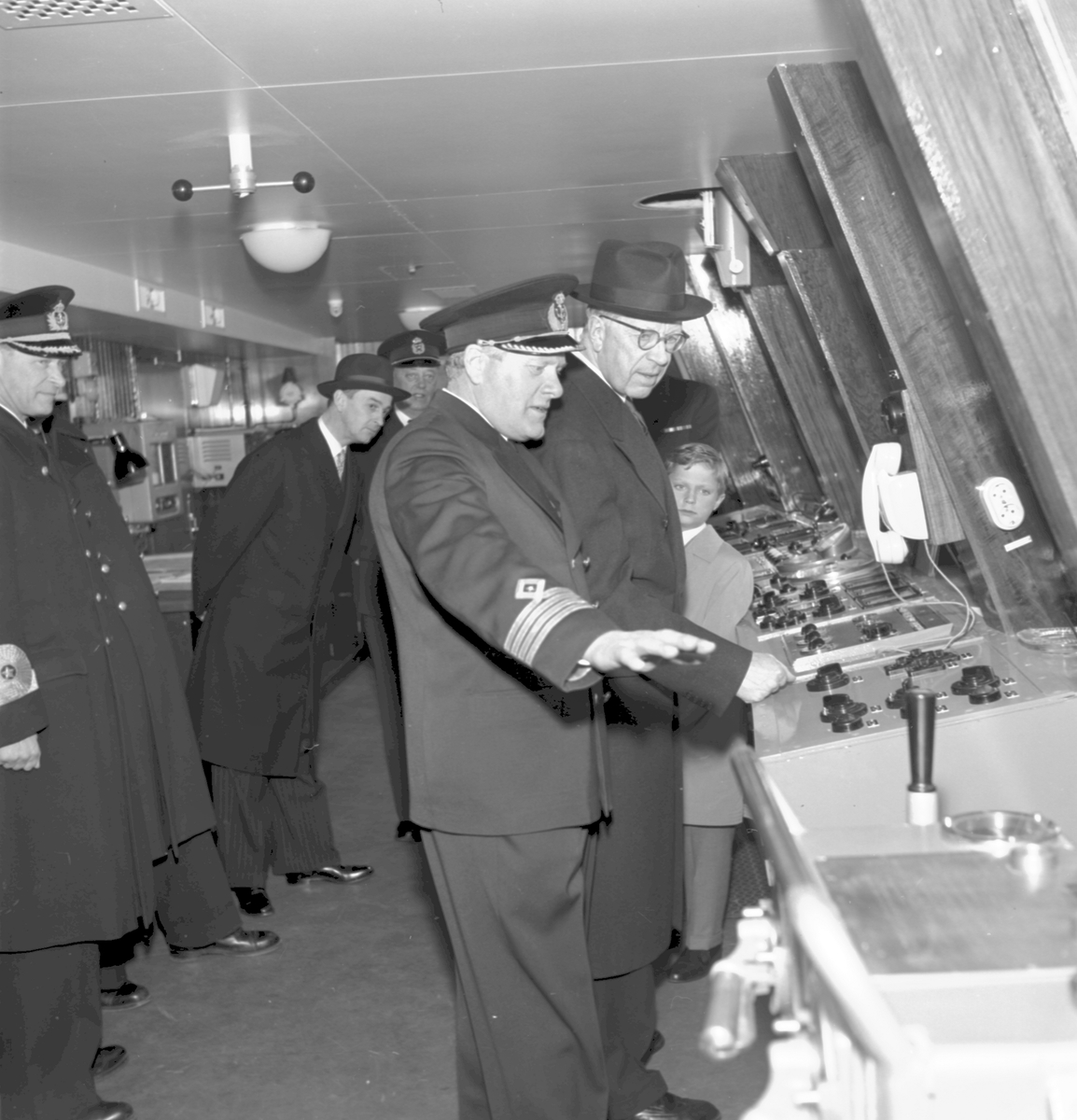 Kungabesöket på tågfärjan " Trelleborg" i Stockholm, Gustav VI Adolf och kronprins Carl Gustaf sedemera Carl XVI Gustaf
