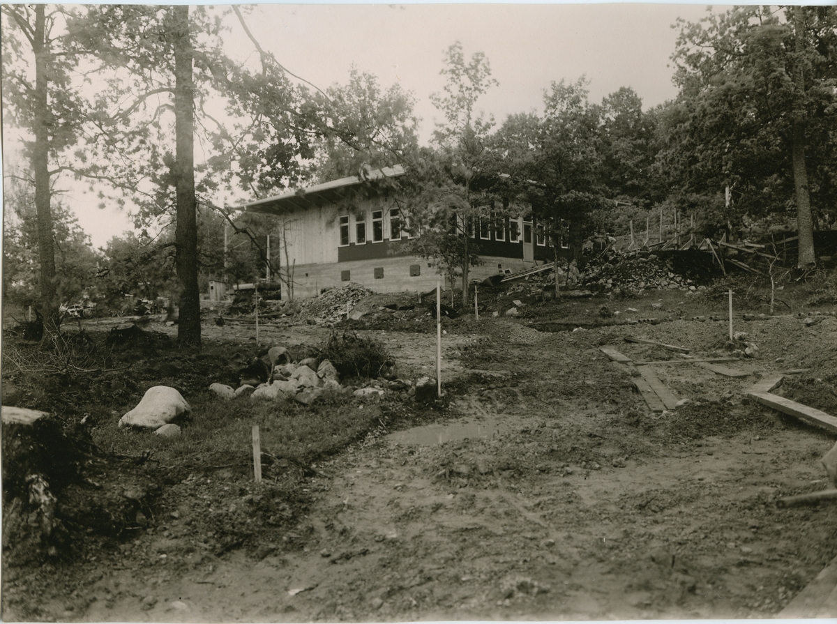Huskvarna stationshus under byggnad.
