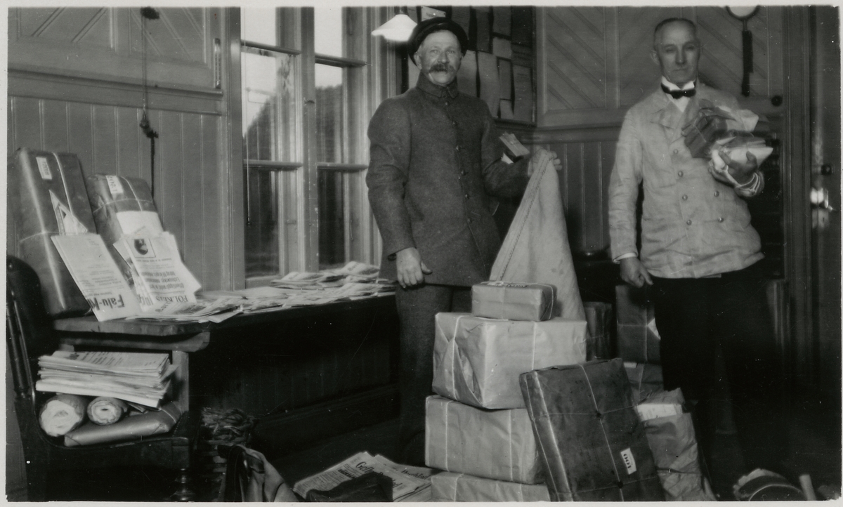 Interiör av expeditionen Åshammar, sortering av tidningar och paket.