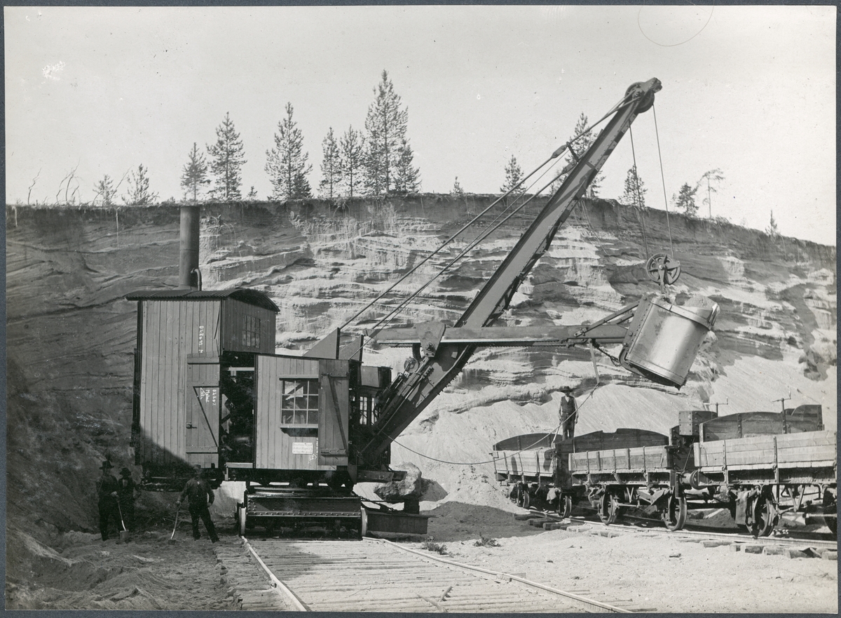 Titel: En Orenstein & Koppel ånggrävmaskin i grusgropen vid Gallbergsträsk.