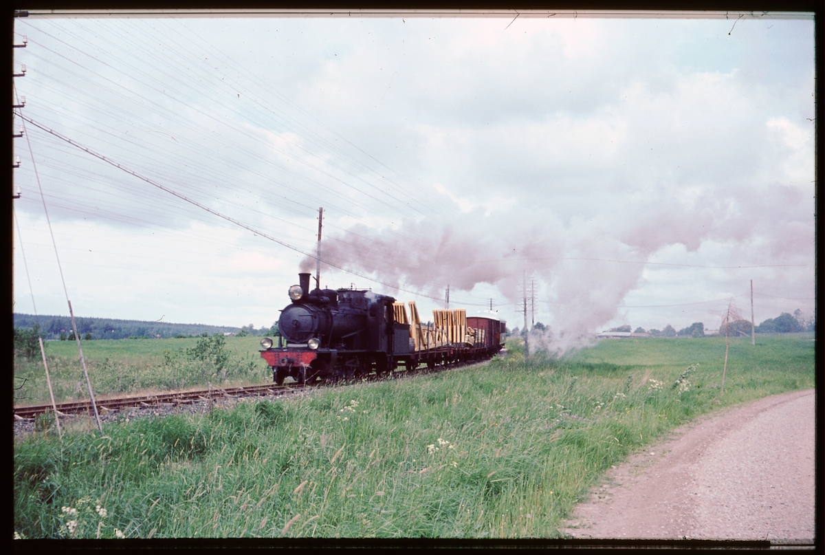 Byvalla - Långshyttans Järnväg, BLJ, lok 5 "Thor". Väg och järnväg går parallellt vid Valla gård strax norr om Byvalla.
