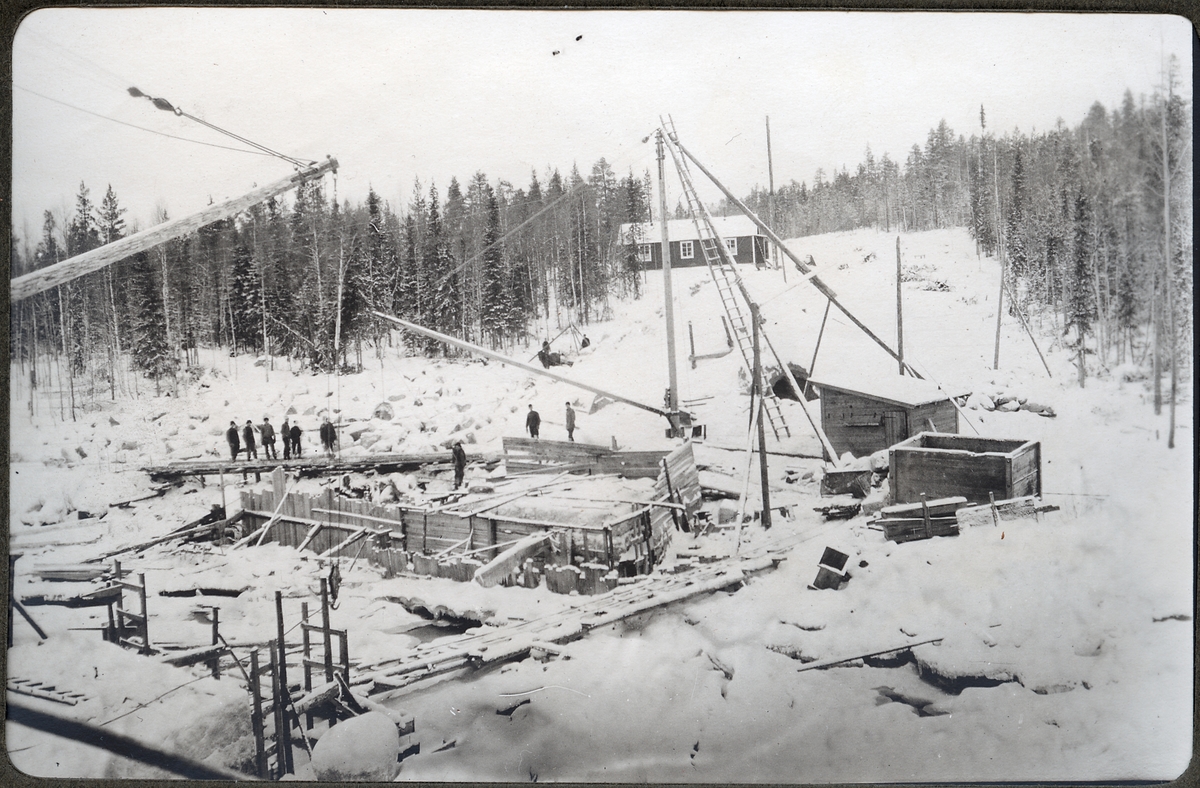 Titel: Broplatsen från öster vid brobygget över Hjuksån.