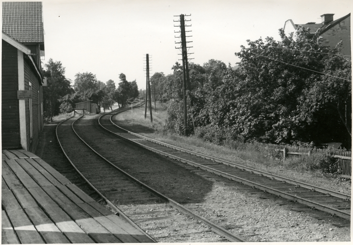 Eskilstuna, godsstation, söderut. Bilden tagen inför elektrifieringen av Trafikaktiebolaget Grängesberg - Oxelösunds Järnvägar.