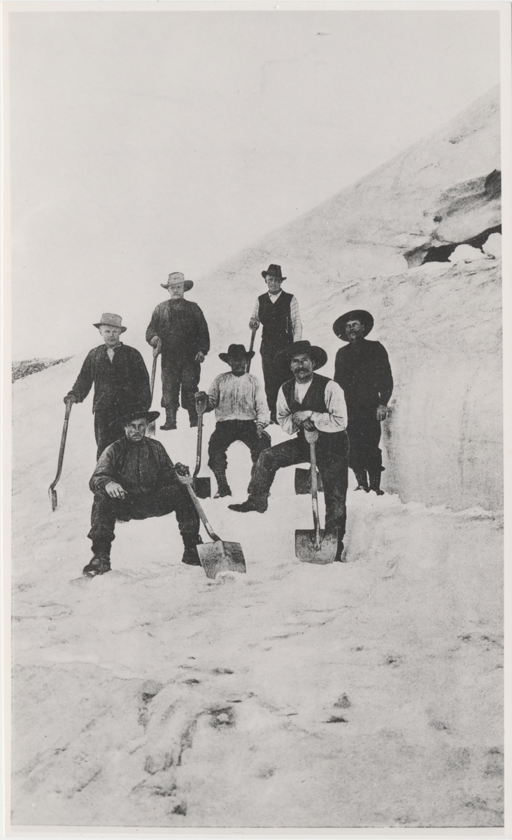 Titel: Snöskottning den 15 juli 1902 för spårets framdragande i närheten av Riksgränsen.