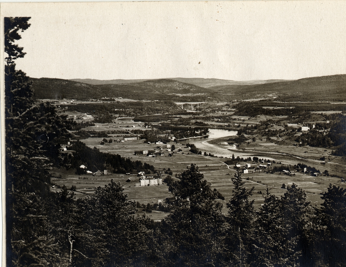 Titel: Ångermanland. Utsikt från Österåsens sanatorium mot norr med Ångermanälven samt Forsmobron i bakgrunden.