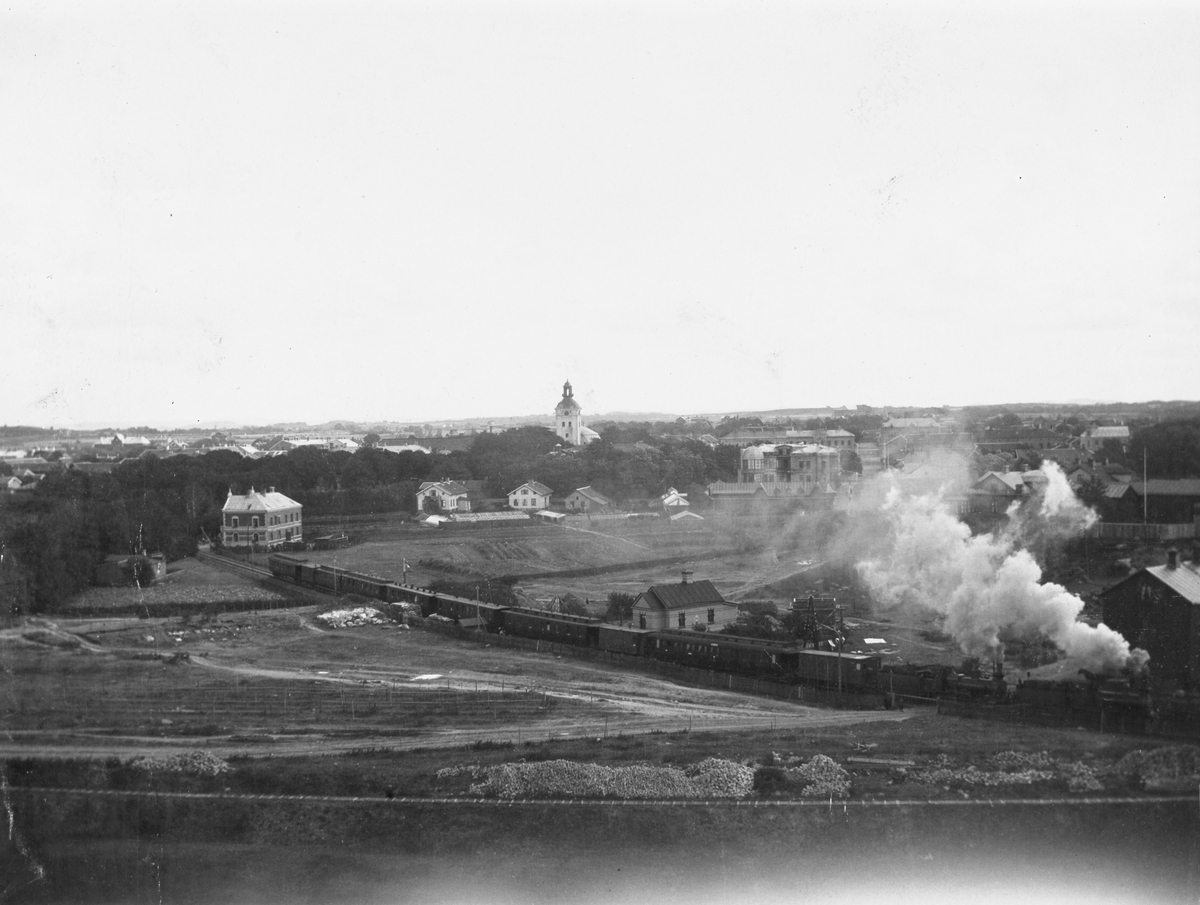 Statens Järnvägar, SJ, persontåg 49. Tåget består av loken SJ VKBa och Da, vagnarna SJ F1, BCo1, F3, Bo2 (någon av 1112 - 1118 eller 1127)NSB Co 315 - 316, NSB Bo 241 - 242, Bo 1128 - 1130, NSB Do type 1 429 - 431, F samt SJ boggivagn.