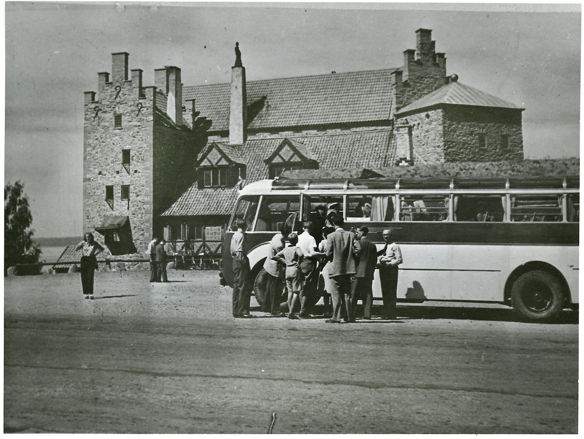 Statens Järnvägar, SJ turistbuss vid Gyllene Uttern i Gränna.