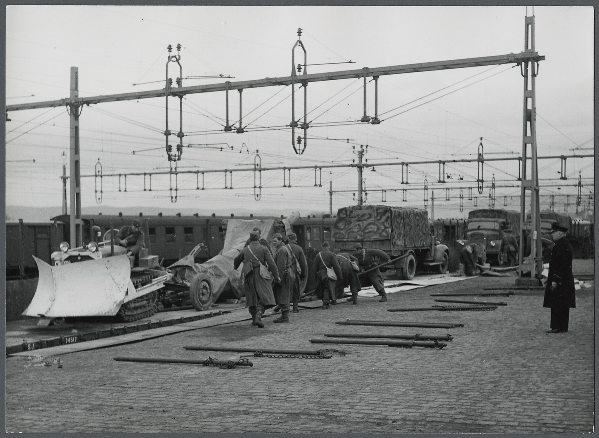 Militärtransport på linjen mellan Nässjö - Falköping. Statens Järnvägar, SJ 74517.