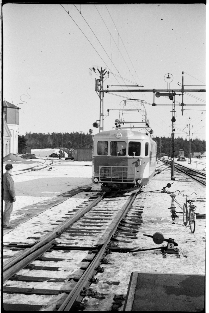 Titel: Statens Järnvägar, SJ Yoa1 31. Elektrisk prov-motorvagn utvecklades av ASEA och ASJ. Denna prov-motorvagn insattes i reguljär trafik på ett flertal platser i Sverige, bland annat i Boden och Västerås-Enköpings-området. Proven utföll till SJ fulla belåtenhet och beslut togs att konvertera 30 stycken dieselmotorvagnar till elektriska motorvagnar.