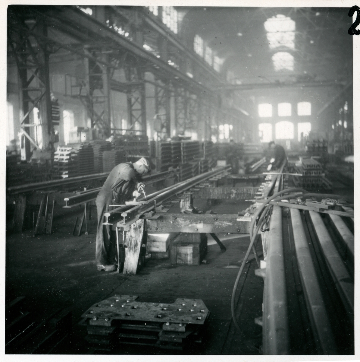 Titel: Arbete med att fästa tungroten och rälen på gemensam platta.