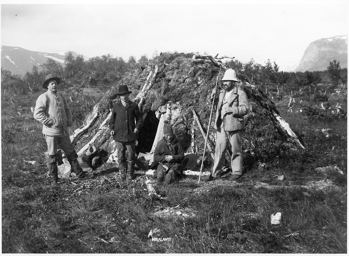 Stationsinpektor Karl Tirén vid ett sameläger i närheten av Nikkaluokta. Tirén är mannen längst till höger i bild.