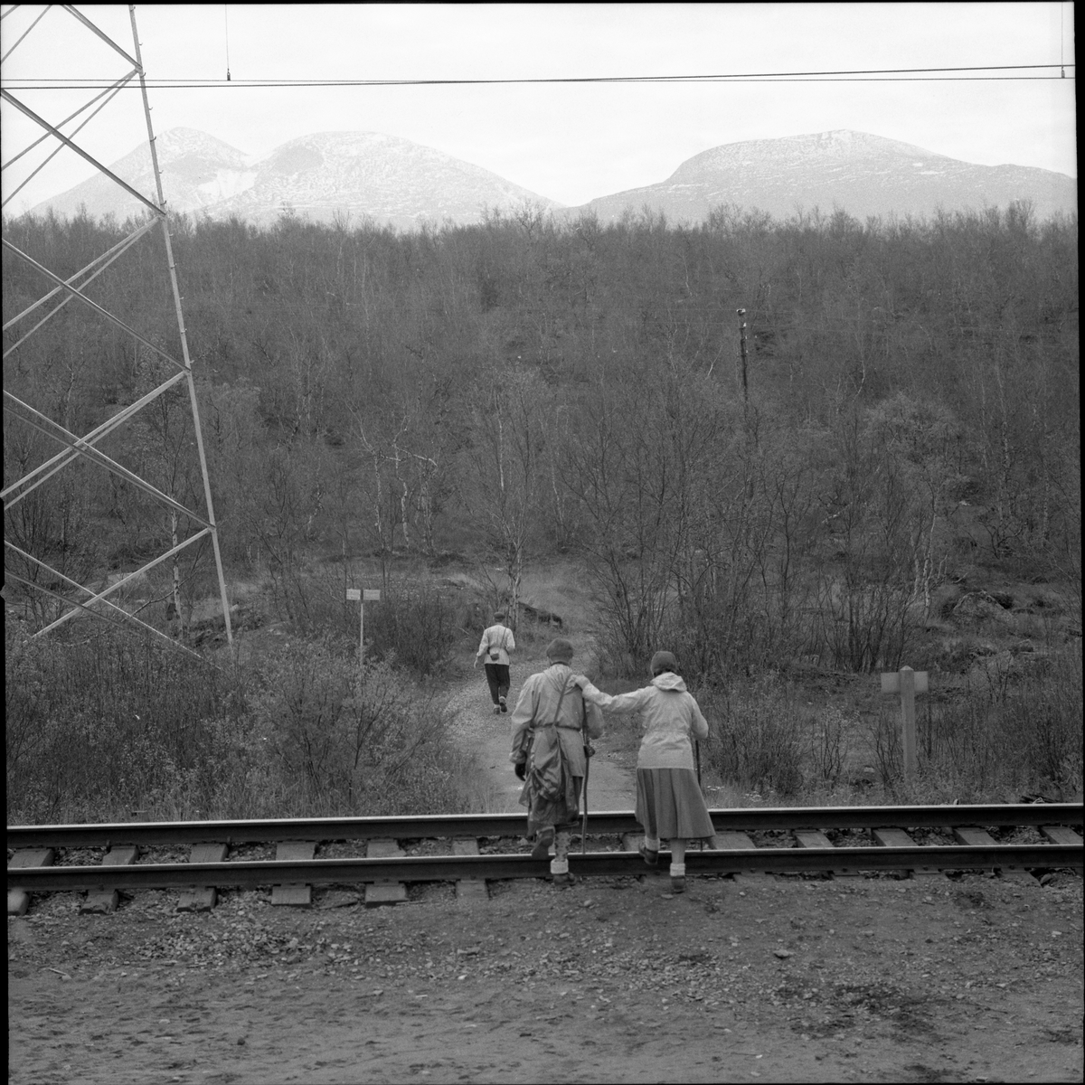 Vid Abisko Turiststation. Fjällvandring på Kungsleden. I bakgrunden syns fjällen Keron till höger, Tjåmohas i mitten och Pallentjokko till vänster.