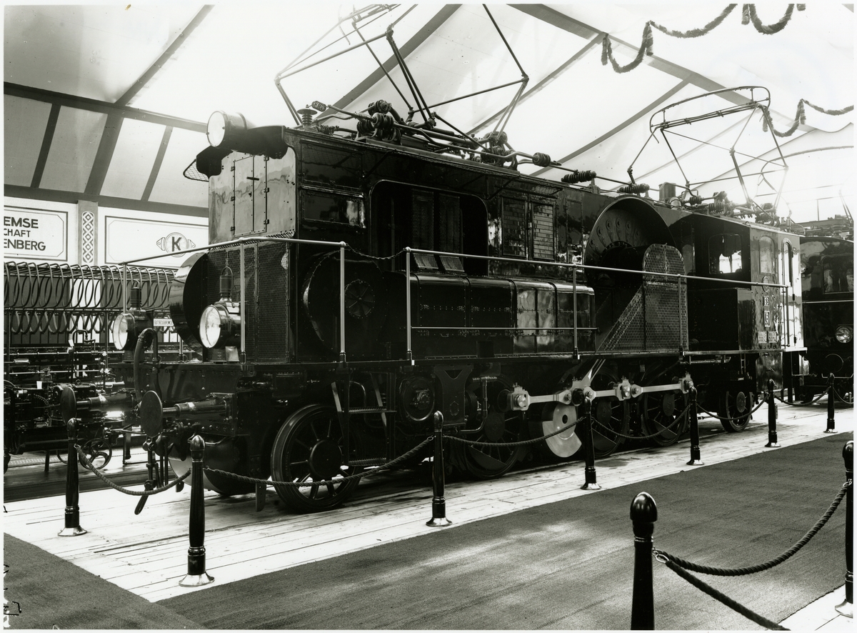 Bilden visar Kungliga Preussiska statsbanornas (KPEV) försökslokomotiv ES 6 avsett för person- och snälltågstrafik. Loket byggdes 1914 av Borsig och Siemens-SchuckertWerke och var byggt för en högsta hastighet på 100 km/tim. Loket hade en effekt på 1470 kW och vägde 80,7 ton. Det sattes i trafik den 25 mars 1914. Den 18 april beslöts att sända loket till Baltiska utställningen i Malmö där det den 20 april 1914 ersatte KPEV lok ES 2 (systerlok till ES 1 jfr KBAA00379). ES 6 stod kvar på utställningen till oktober 1914, då det återsändes till Bw (Bahnbetriebswerk) Bitterfeld. Loket gjorde sedan sporadisk tjänst fram till 20 april 1922 då det avställdes som följd av maskinskada. Loket slopades 22 januari 1923.
