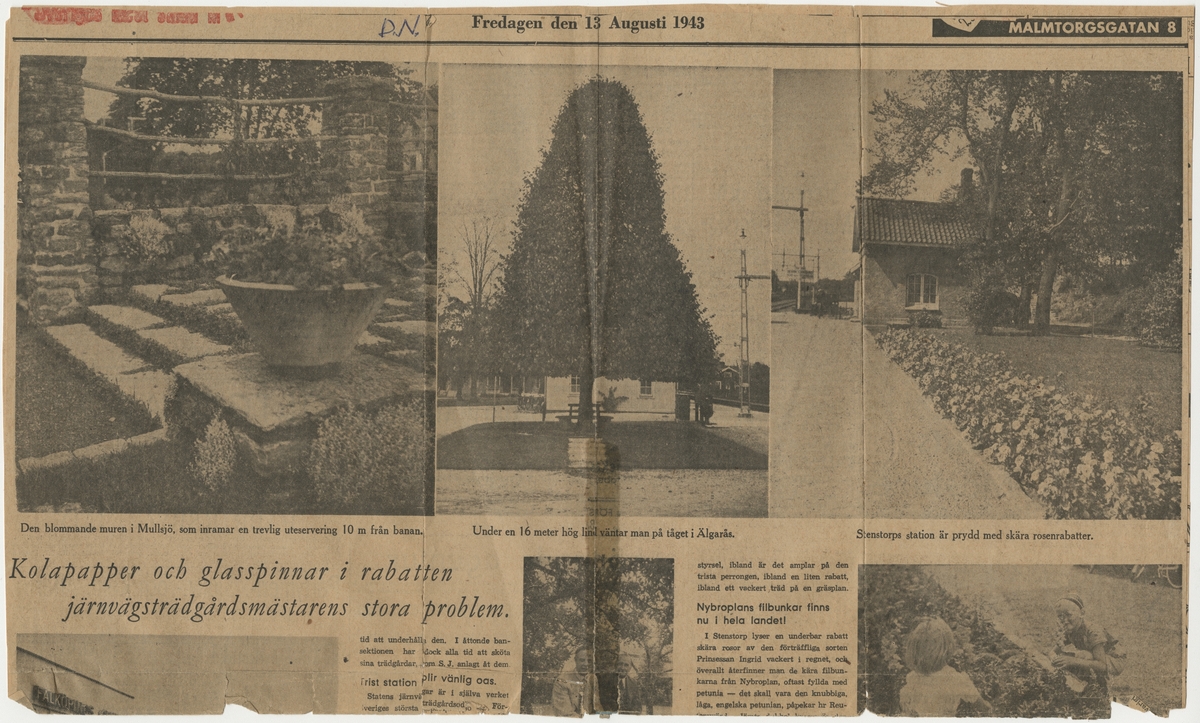 Dagens Nyheter, 13-08-1943: Kolapapper och glasspinnar i rabatten järnvägsträdgårdsmästarens stora problem.