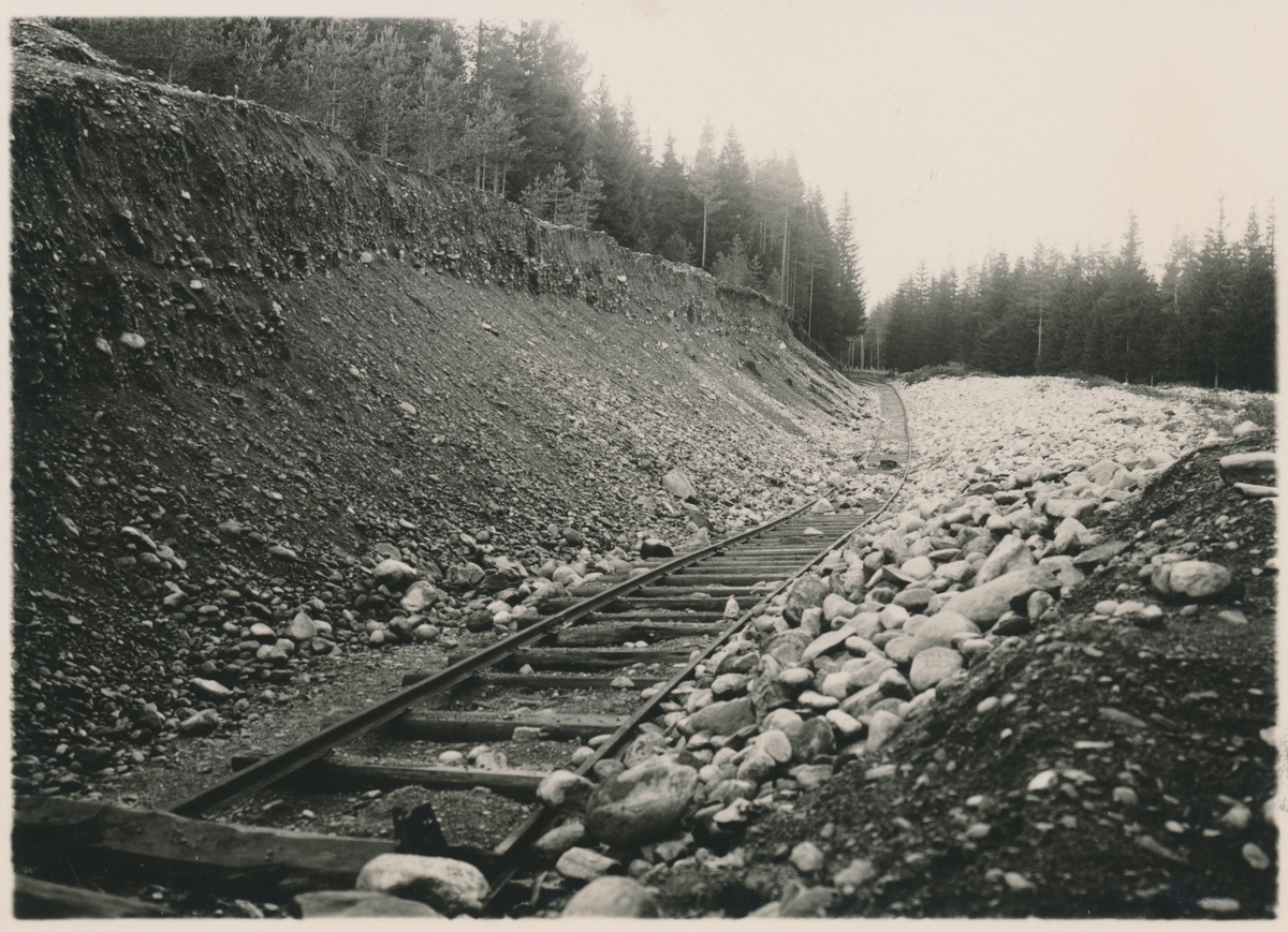 Vången. Dalslands Järnväg, DJ. Järnvägens grustag vid Vången, ett ovanligt rent och förträffligt grus.