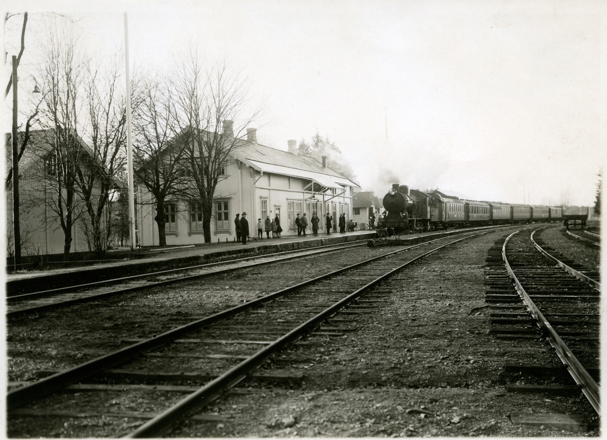 Envånings stationshus med väntpaviljong mot plattformen. Stationshuset nu rivet .Stationen, som är gränsstation mot Norge, anlades 1879. Envånings stationshus i trä. Mekanisk växelförregling .