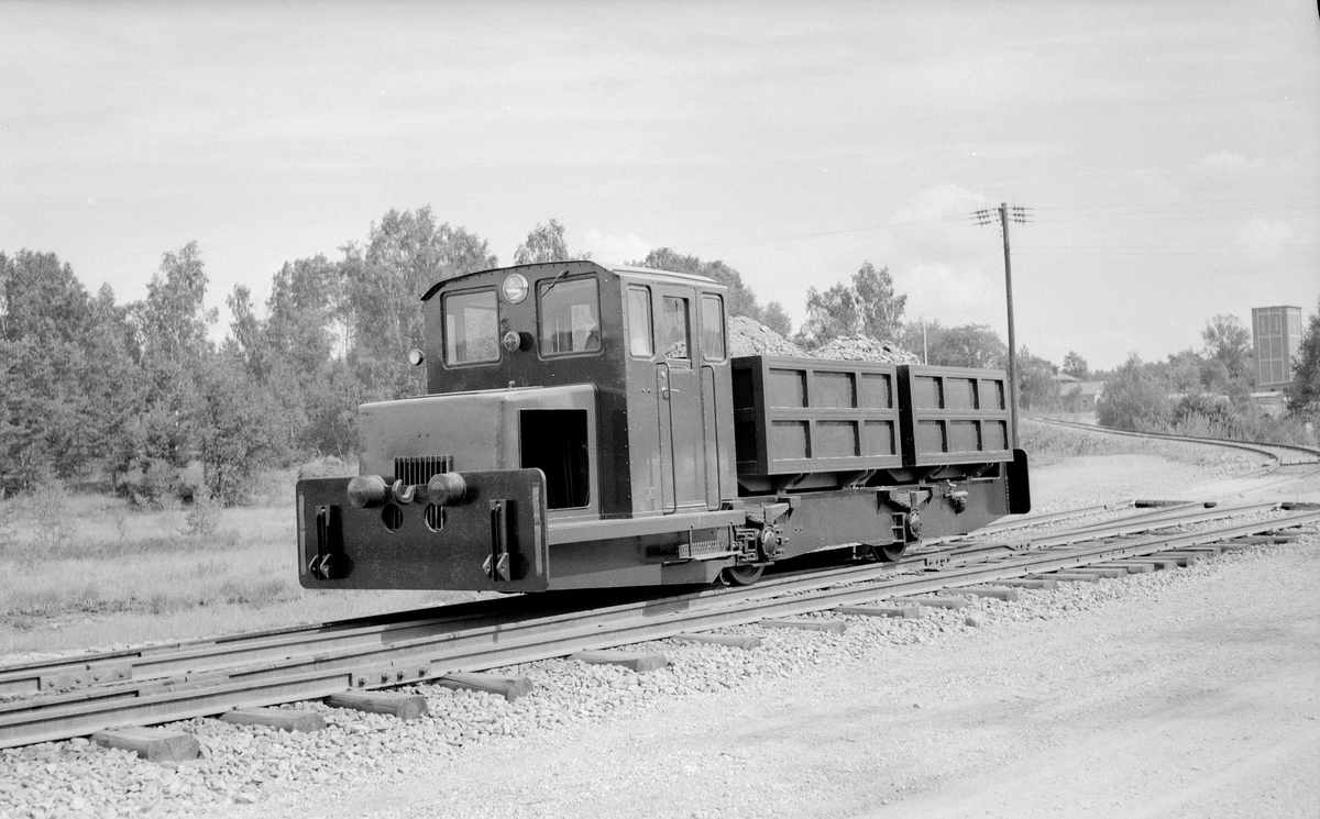 Titel: Åmmebergs Järnväg, ÅJ motorvagn med tippflak, "Bulleroxen", tillverkad av Motala 1955.