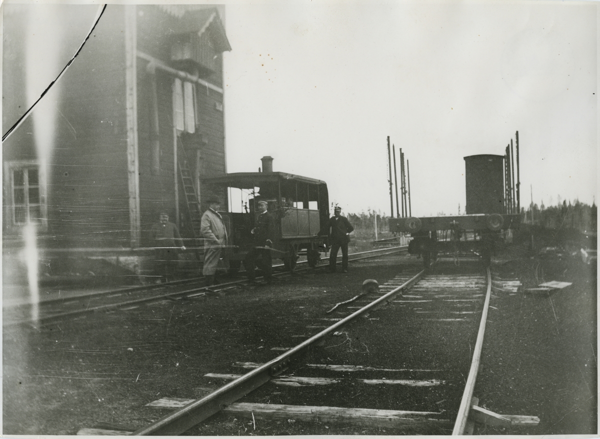 Lustresor, inspektioner längst Malmbanan. Personalen vid pumpen och en station. Gammal ångdressin från Lundvik, Vännäsberg.