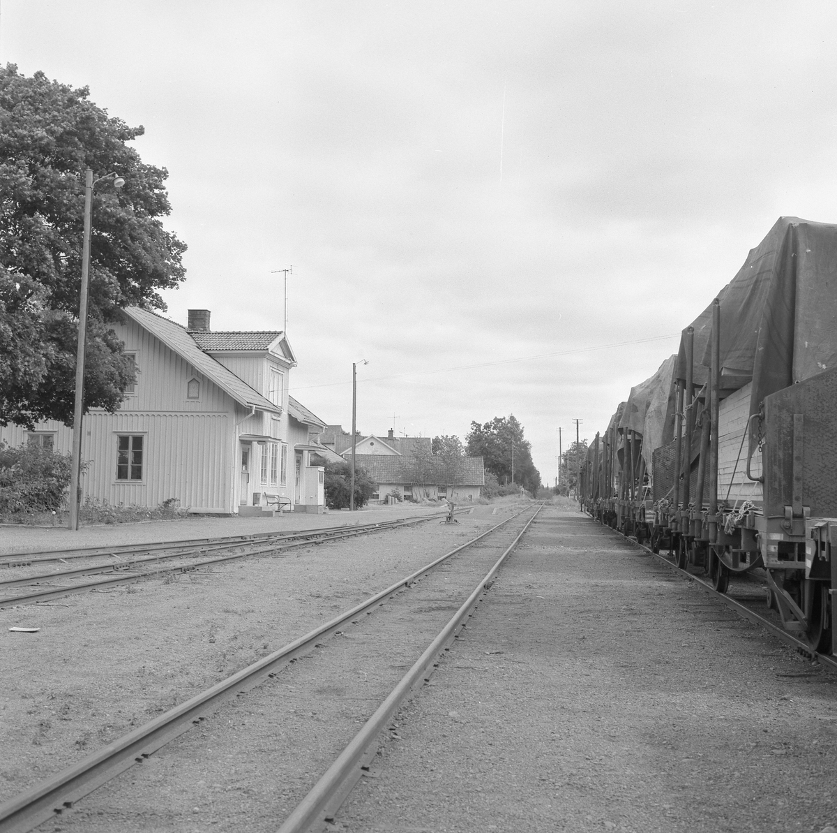 Titel: Landsbro station. Namnet var före 1/6 1895 LANNASKEDE. Station anlagd 1885. En- och enhalvvånings stationshus i trä