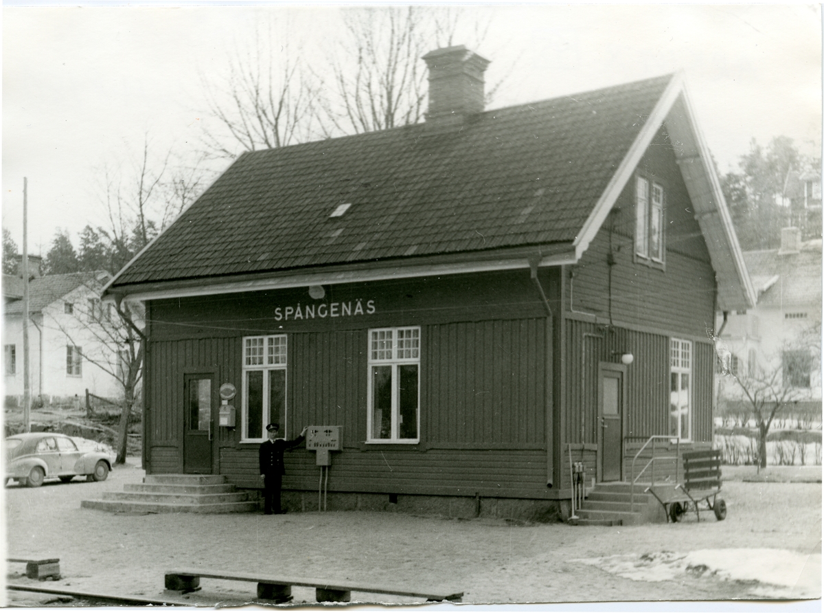 Spångenäs station. Det fanns en trafikförvaltning för tre järnvägar, Norsholm - Västervik - Hultsfreds Järnvägar, NVHJ. Sträckan Hultsfred-Västerviks järnväg, HWJ, öppnades i november 1879. Stationen revs i mars/april 1973.
