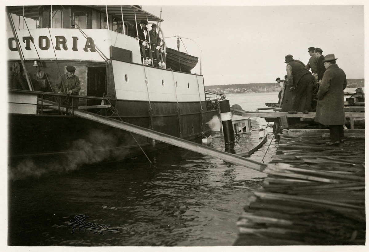 Bärgning av ångbåten "Lövholmen", med hjälp av ångbogseraren "Victoria. "Lövholmen" är här på väg upp till ytan.