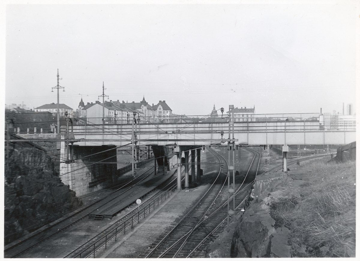 Järnvägsspår under Rosenlundsgatan. Spåret in till höger leder till hantverkskvarteret Måttbandet och dess magasin.