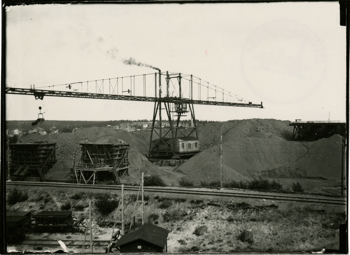 Titel: Malmupplaget vid Svartön Luleå och den ångdrivna lastkranen Freja