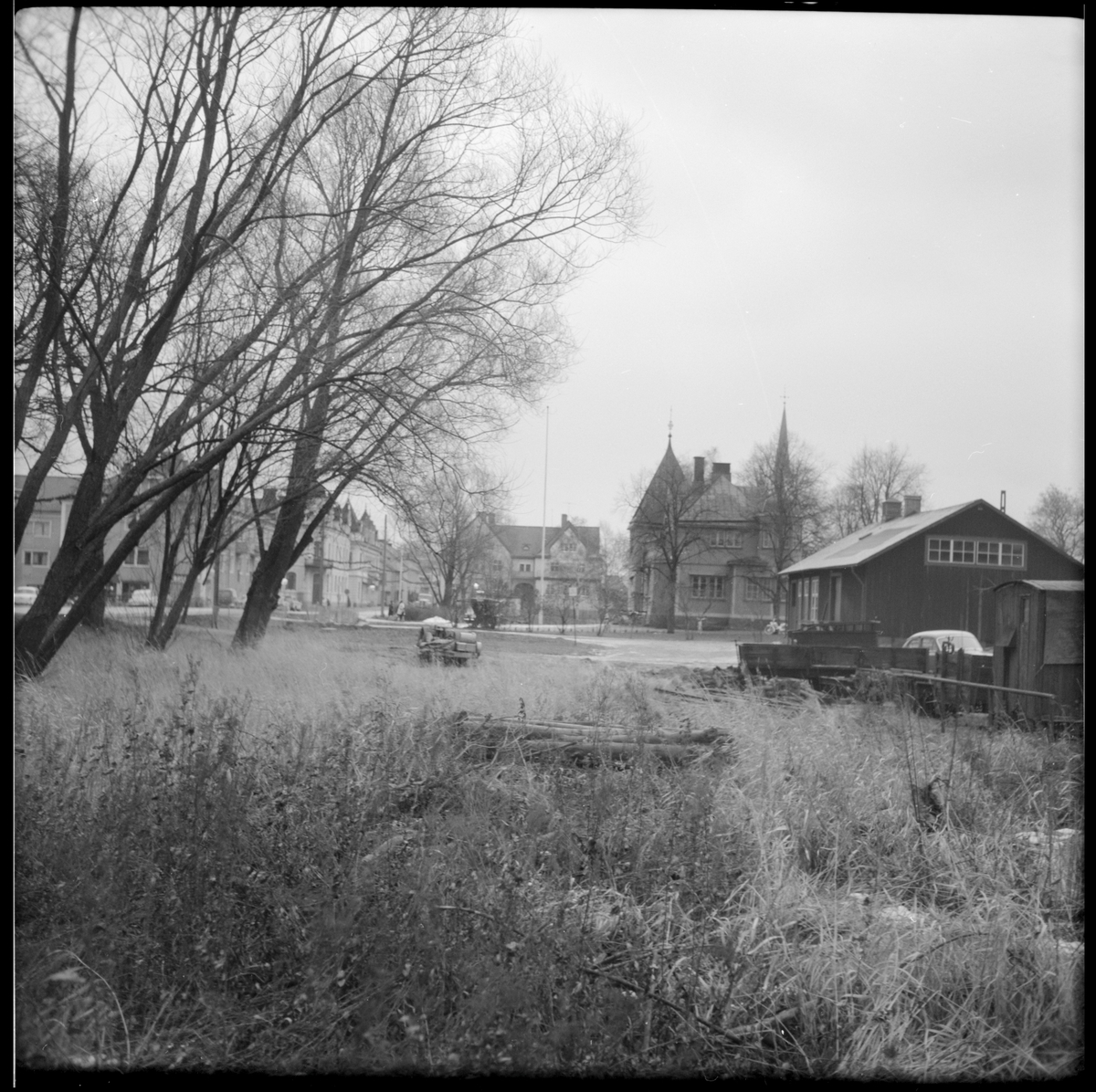 På bildens vänstra sida ses stationshuset i Mariefred. Framför skymtar bangården, som användes av Museijärnväg Östra Södermanlands Järnväg, ÖSlJ.