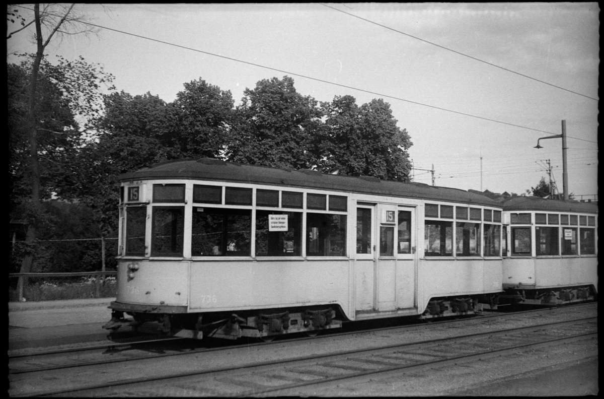 Aktiebolaget Stockholm Spårvägar, SS B17 736 "två-rum-och-kök" vid hållplats med sträckningen Norra Bantorget - Råsundahallen "Gränsen" - Esplanaden på linje 15.