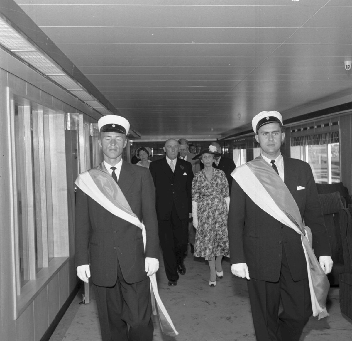 Titel: Kungaparet ombord M/S Trelleborg Kung Gustav VI Adolf Drottning Louise Mountbatten