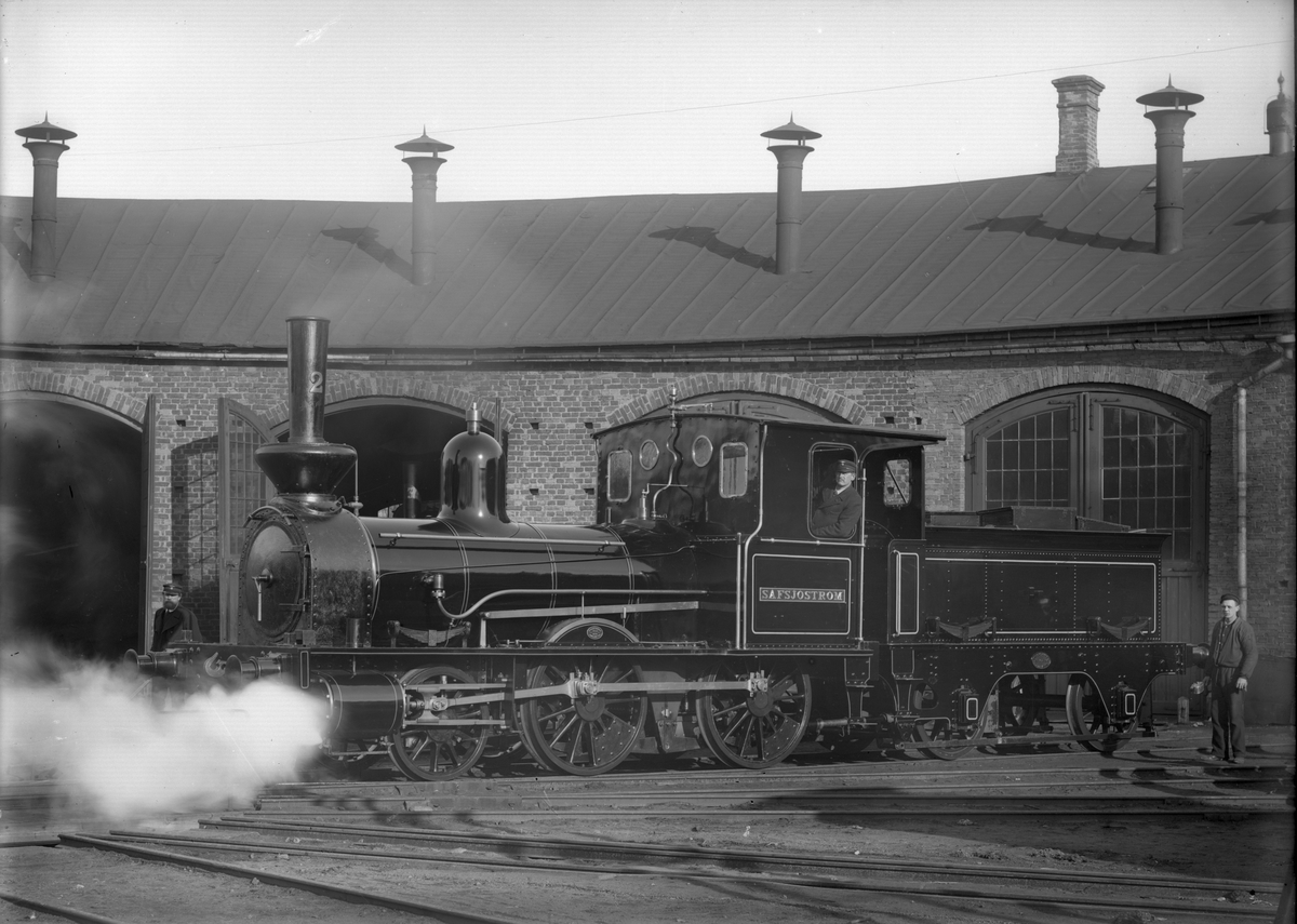 Nybro - Sävsjöströms Järnväg, NSJ lok "Säfsjöström". Loket tillverkades av Nohab, tillverkningsnummer 64. Skrotades 1916. Bilden är troligen tagen vid leveransen.
