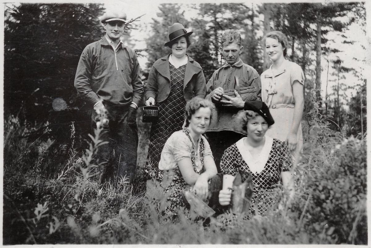 Bärplockarlaget bakre raden från vänster: Erik, Astrid, Oskar, Ingeborg samt sittandes: Siri och Ingrid.