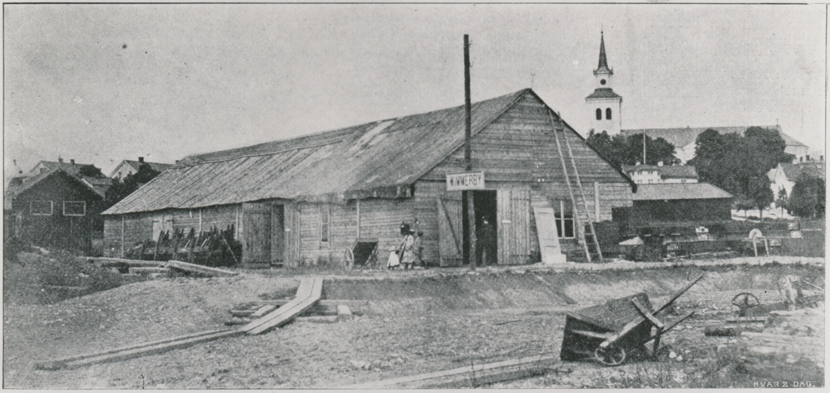 Stationen öppnad 1877 för allmän trafik. 1902 flyttades stationshuset till sin nya plats, en bit närmare staden. Under förflyttningen byggdes ett provisoriskt stationshus, som syns på bilden. Expeditionen, telegraf och väntesalen fanns in i det primitiva skjulet. Utanför, på en telegrafstolpe, är upphängd en trätavla med stationsnamn.
