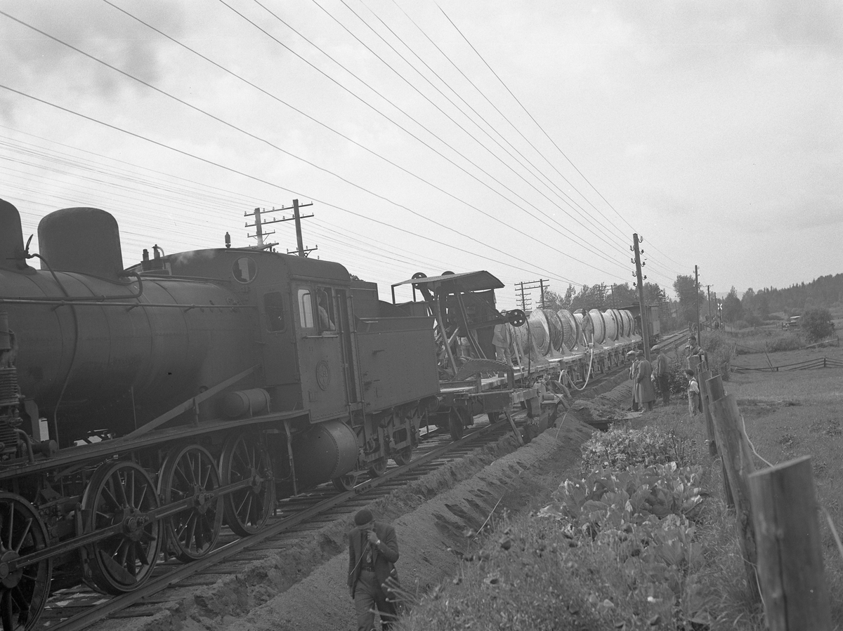 Statens Järnvägar, SJ E 1458. Kabelnedläggning från tåg.