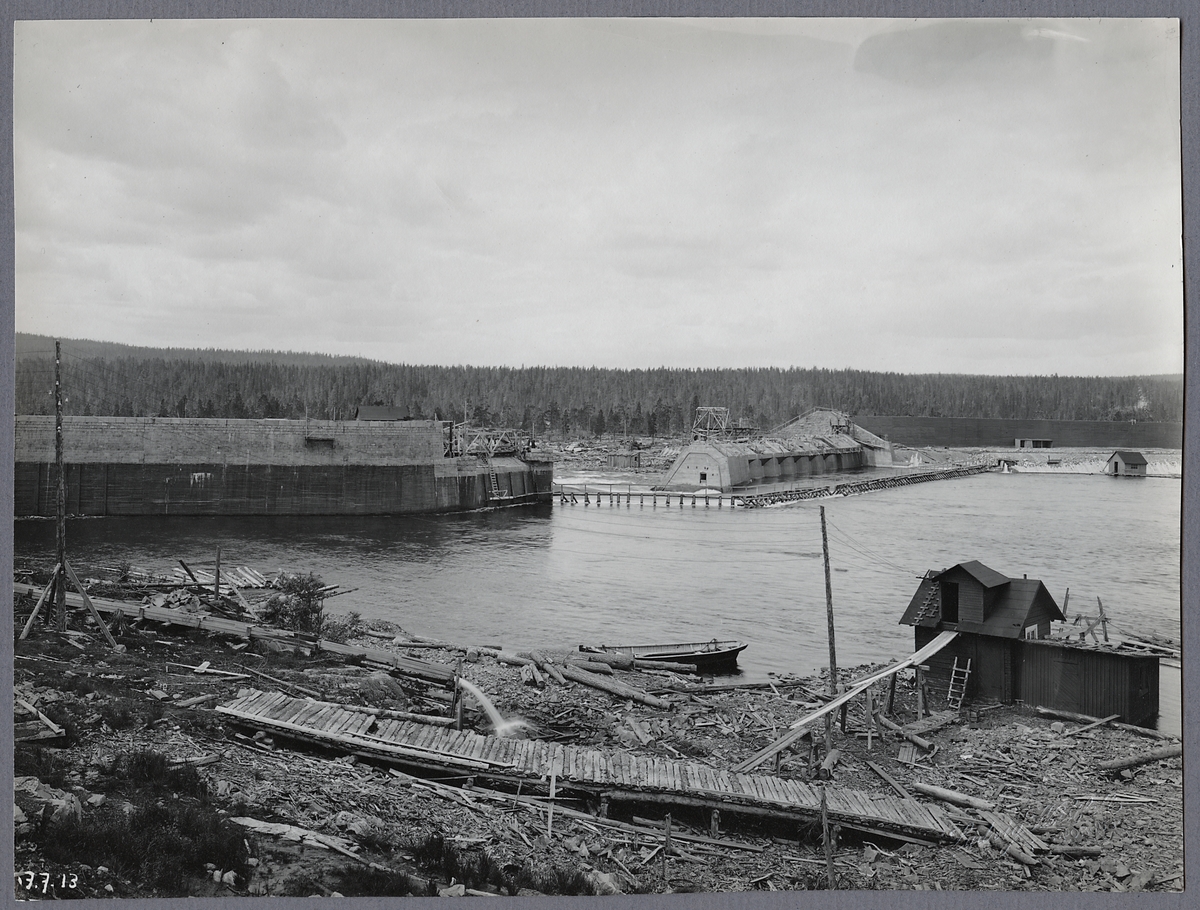 Porjus kraftverk i Stora Luleälv under byggnation. Utsikt över stora skibordet.