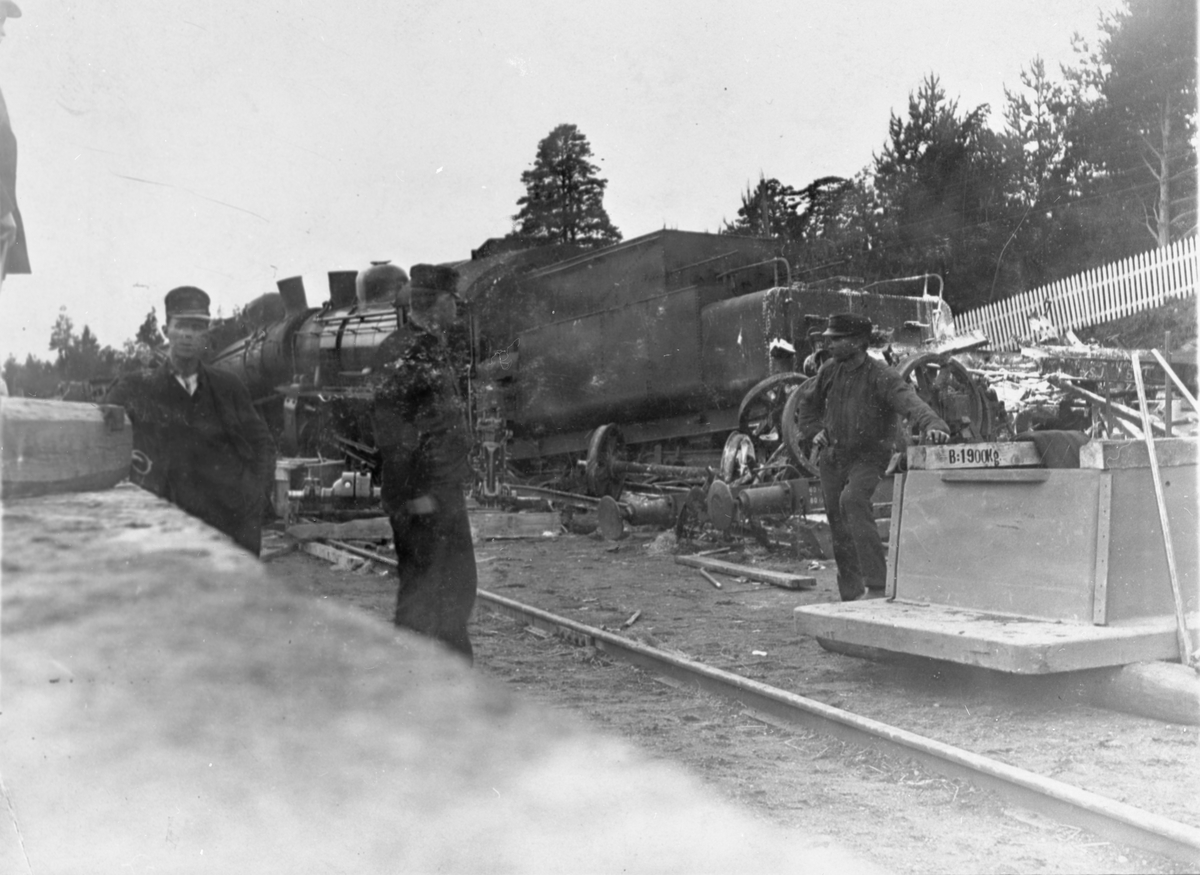 Titel: Det hade först meddelats att ett tåg n:r 2 från Berlin via Trelleborg var inhiberat på grund av att en ångfärja försenats och därför skulle tåg n:r 12 från Köpenhamn via Malmö gå före. Färjan kom emellertid i så god tid att tåg n:r 2 kunde avgå och skulle möta tåg n:r 751 i Bankeberg. Kontorsbiträdet Eriksson i Malmslätt överlämnade till kontorsbiträdet Kjellson och gav då denne underrättelse om ett telegram. I signaltornet där växlarna ställdes om jobbade stationskarlen Carlsson. Anledningen till att han omlagt växeln på det sätt han gjorde var en av det senare stationsbiträdet given order, att tåg n:r 751 skulle fortsätta och möta tåg n:r 2 i Bankeberg. Stationskarlen fick uppfattningen att det var tåg n:r 12 som skulle möta i Bankeberg, då han trodde att tåg n:r 2 blivit inställt. Det senare meddelandet att tåg n:r 2 trots allt utgått från Trelleborg hade aldrig delgivits stationskarlen. Växlarna hade, vilket framgick av undersökningen, aldrig kontrollerats av stationsbiträdet Kjellson. Då stationskarlen gick ner från ställverket såg han tåg n:r 12 på ingående 10 meter från det andra loket. Ögonblicket därefter kom kollisionen med tåg n:r 751.22 personer omkom och 12 skadades. Bland de omkomna fanns August Strindbergs dotter Greta von Philp. Hennes man Henry von Philp överlevde.