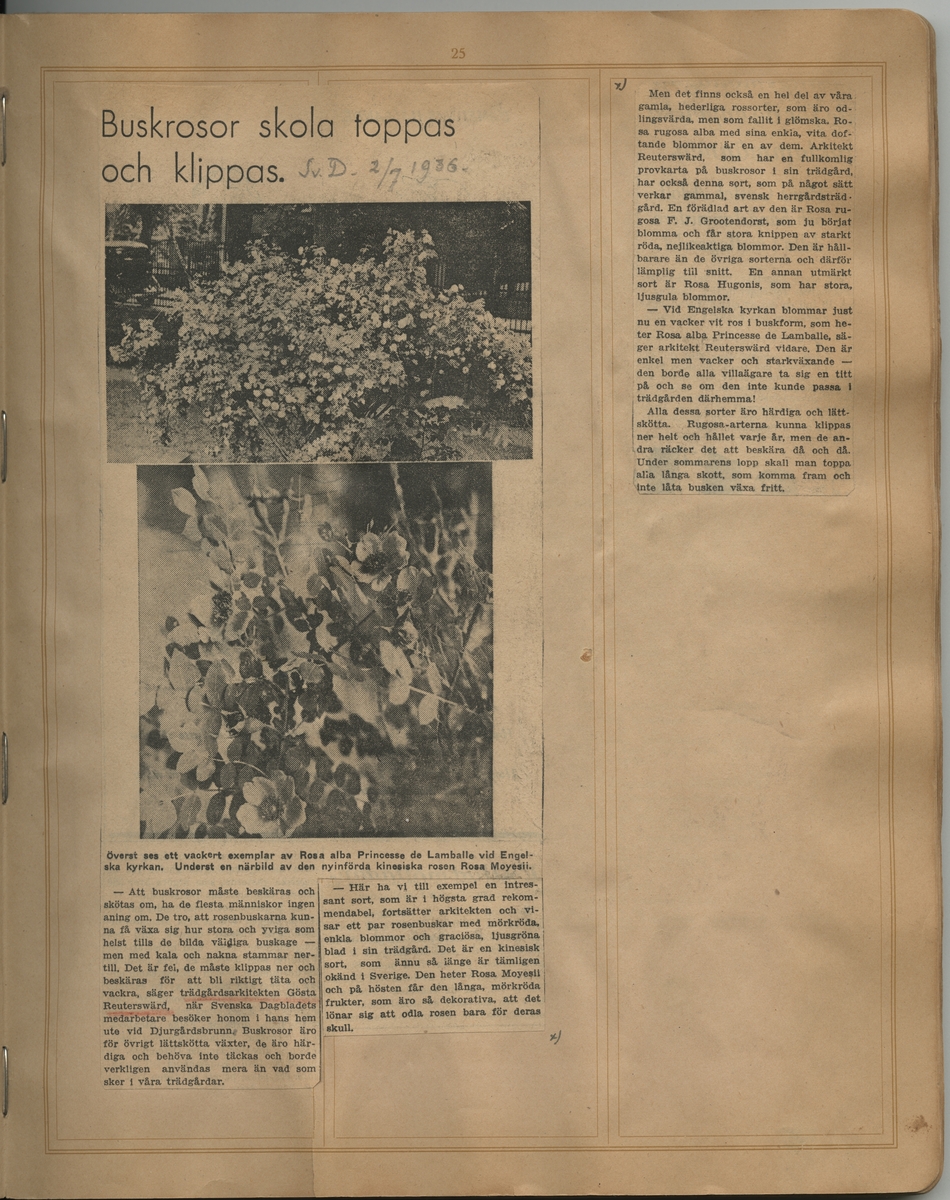 Svenska Dagbladet, 02-07-1936: Buskrosor skola toppas och klippas.